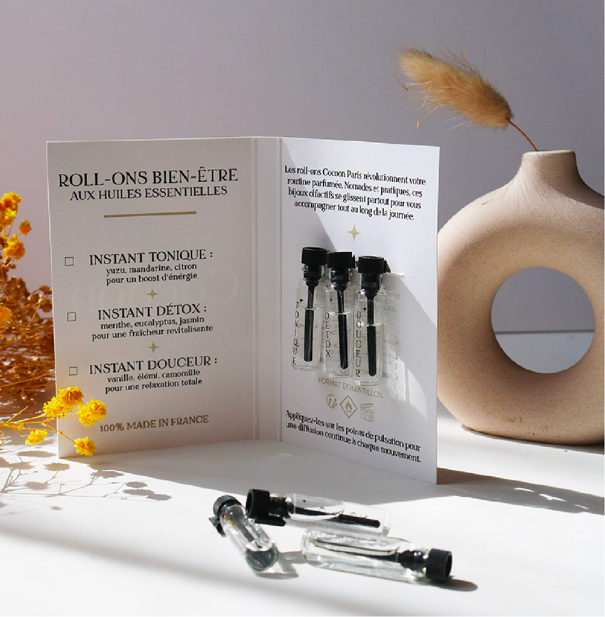Un roll-on de 10 ml peut être utilisé pendant environ 5 mois en usage quotidien. Vous pouvez appliquer Instant Douceur aussi souvent que nécessaire, notamment lors de périodes de stress, avant de dormir ou dès que vous ressentez le besoin de vous recentrer dans une bulle de sérénité.