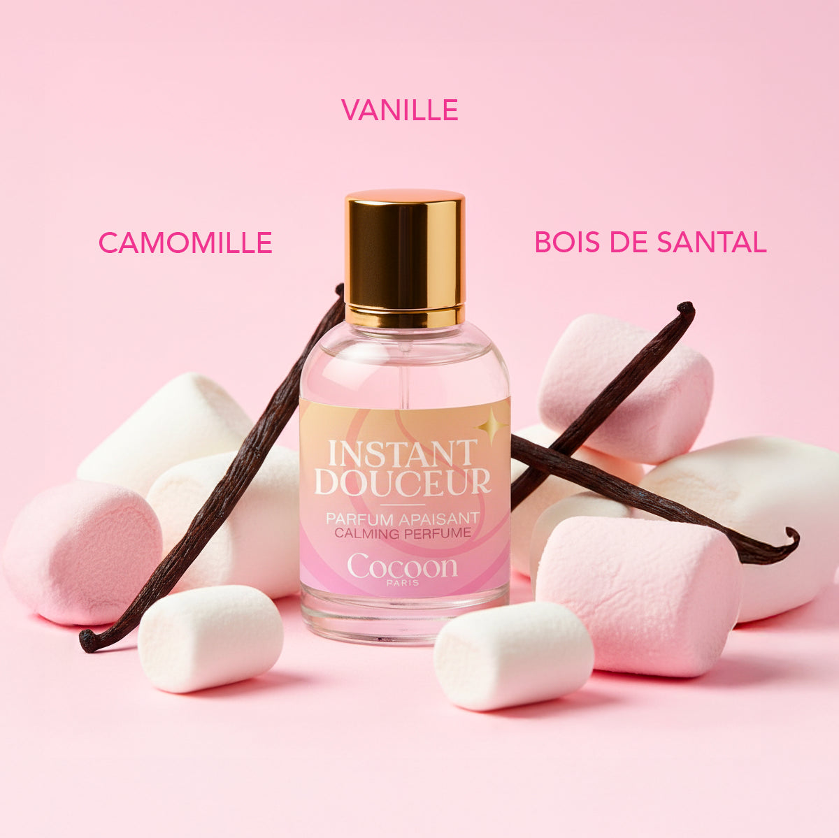 β Comforting : Vanilla and tonka bean envelop the skin in a soft and reassuring scent.